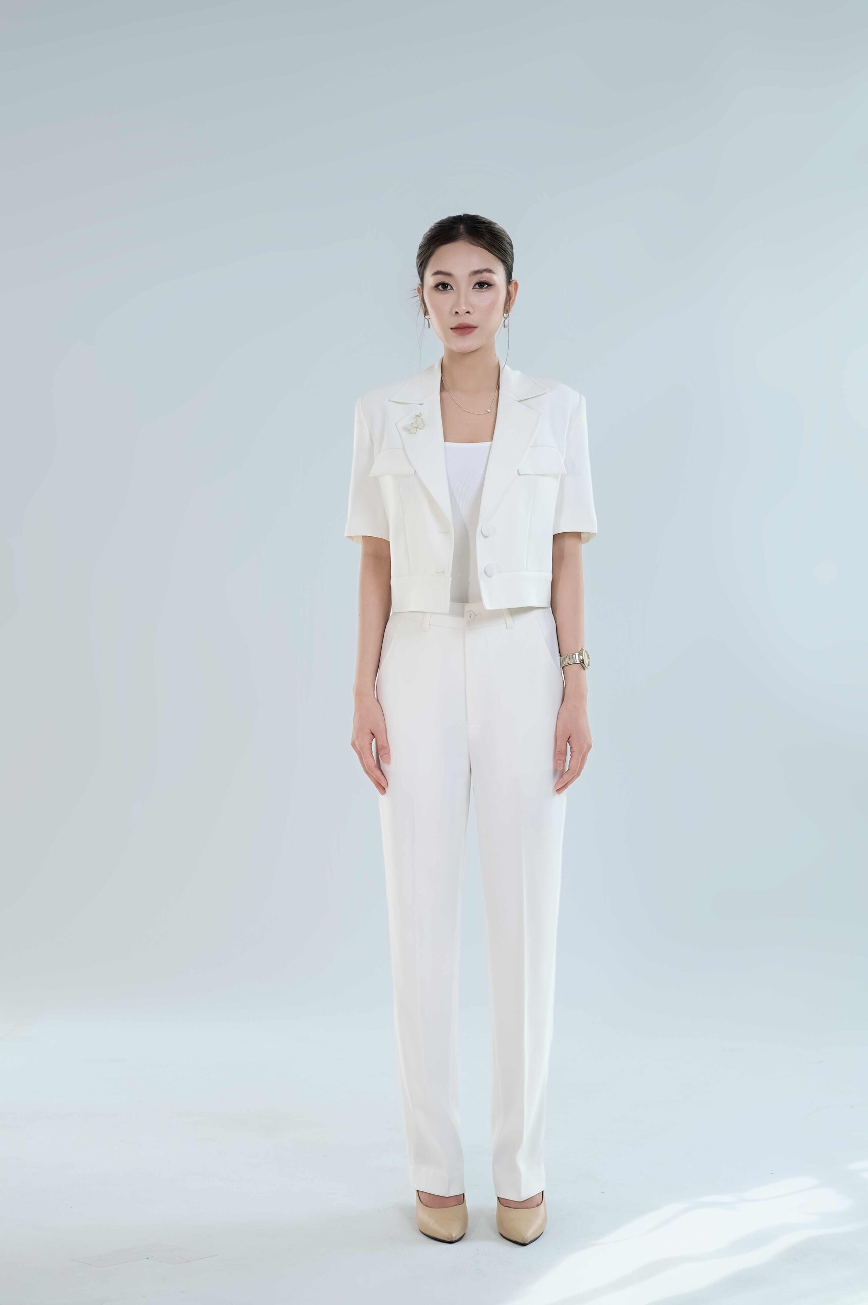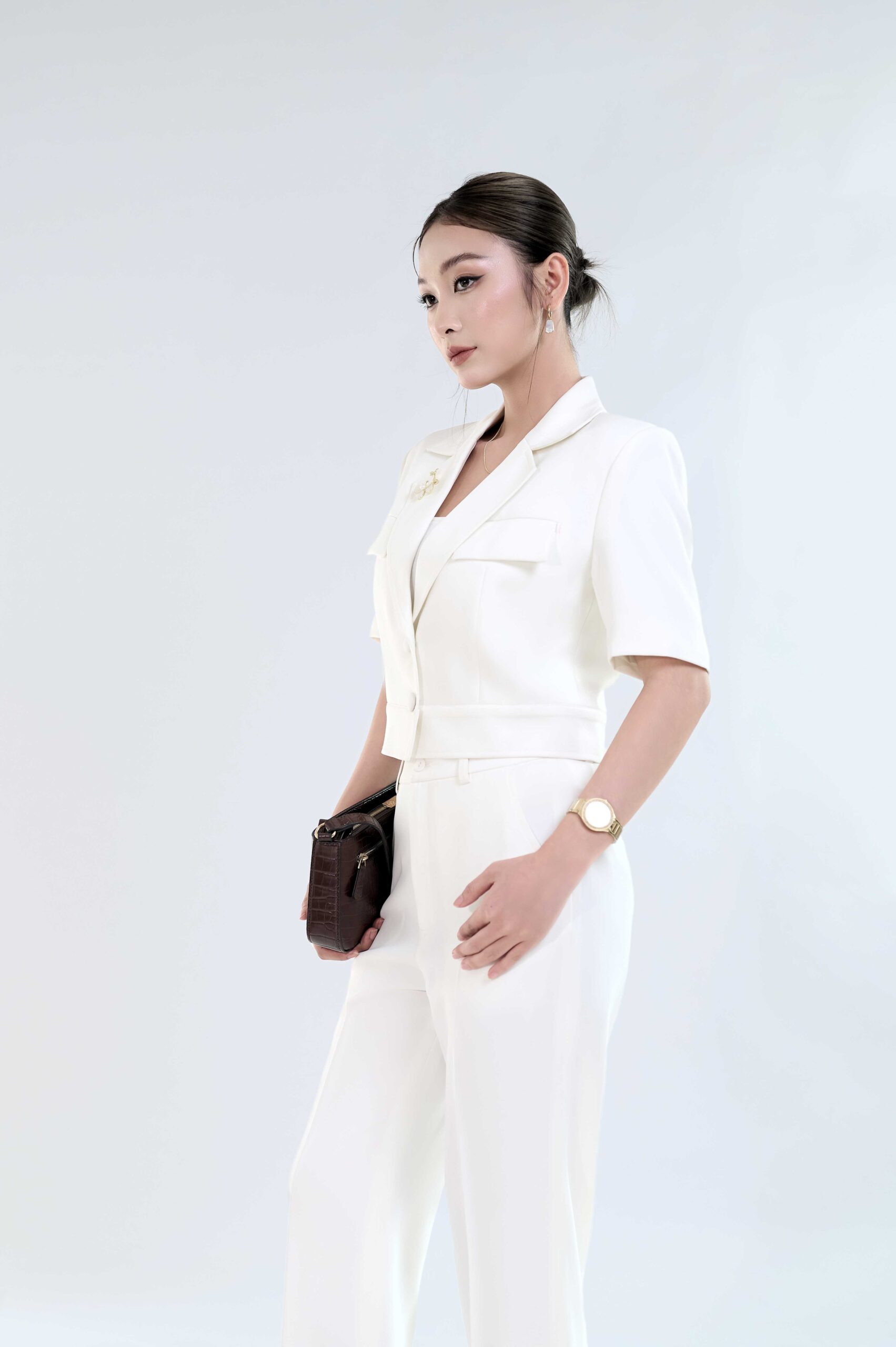 • Kiểu dáng: Áo vest , áo dạng crop top, tay ngắn, ve cổ chữ V